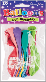 10 Age 13 Printed Balloons